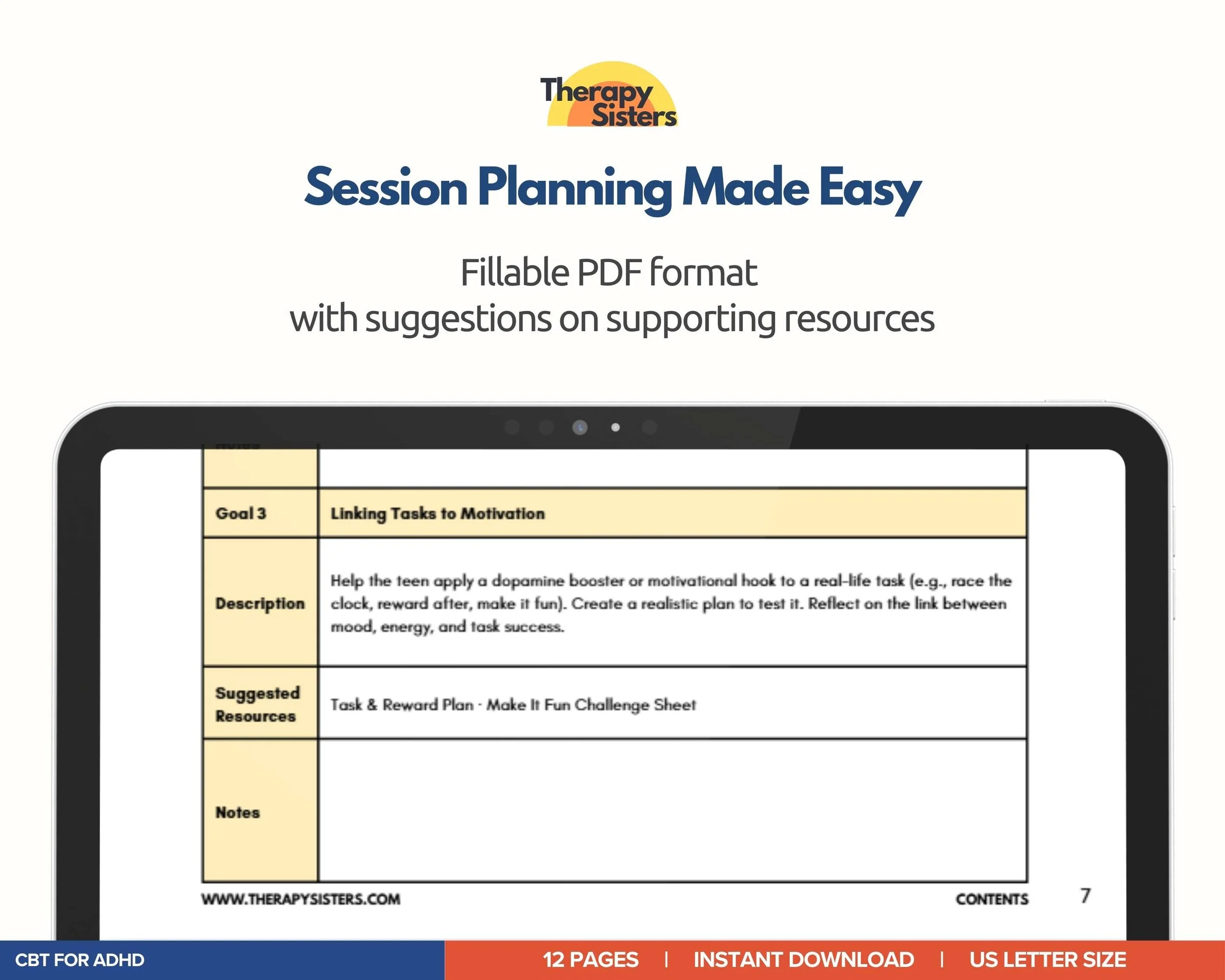 This 10-week session plan is designed for therapists, coaches, and educators working with teenagers with ADHD. Blending coaching techniques with CBT for ADHD, each session supports teens in developing practical strategies for executive functioning, time management, emotional regulation, self-advocacy, and self-esteem.